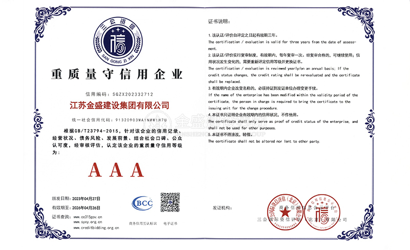 先后被我省市命名為"重合同,守信用"企業(yè),"AAA"級施工單位和 施工單位